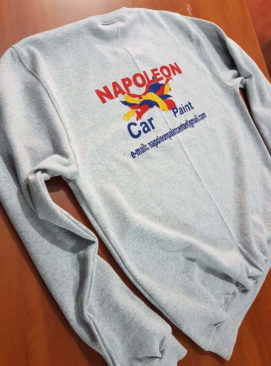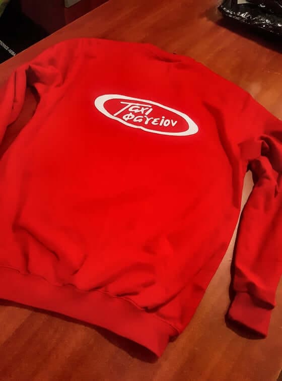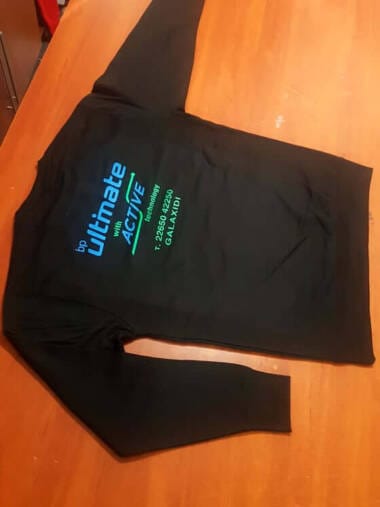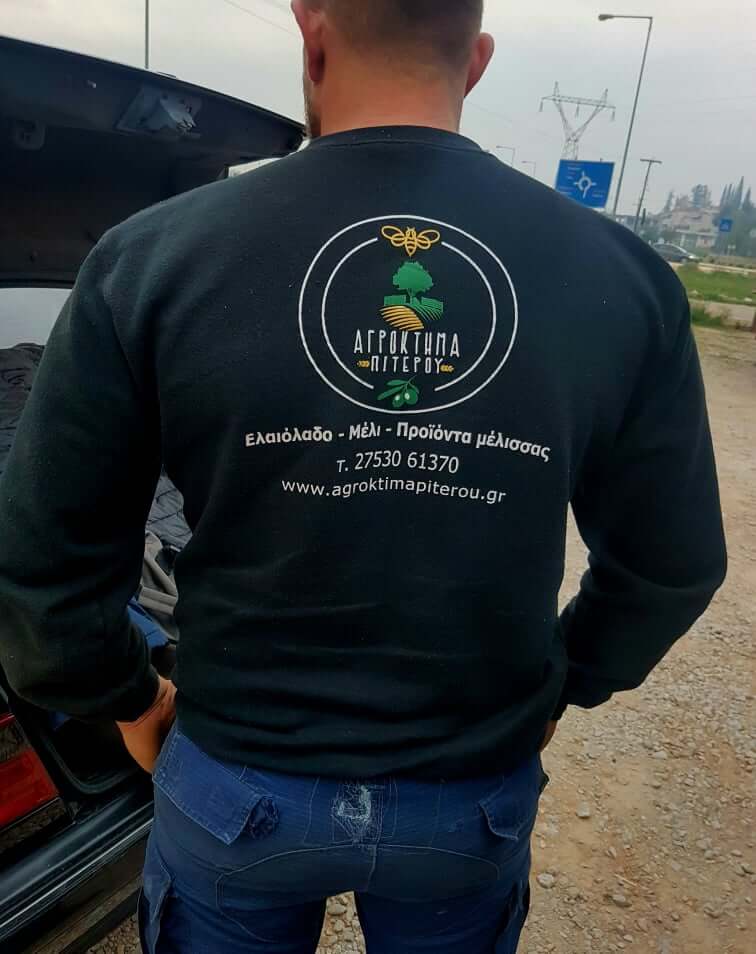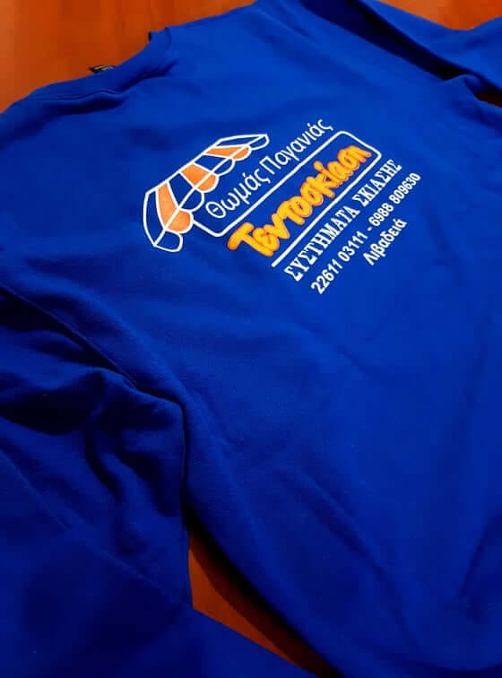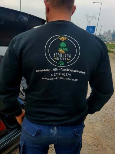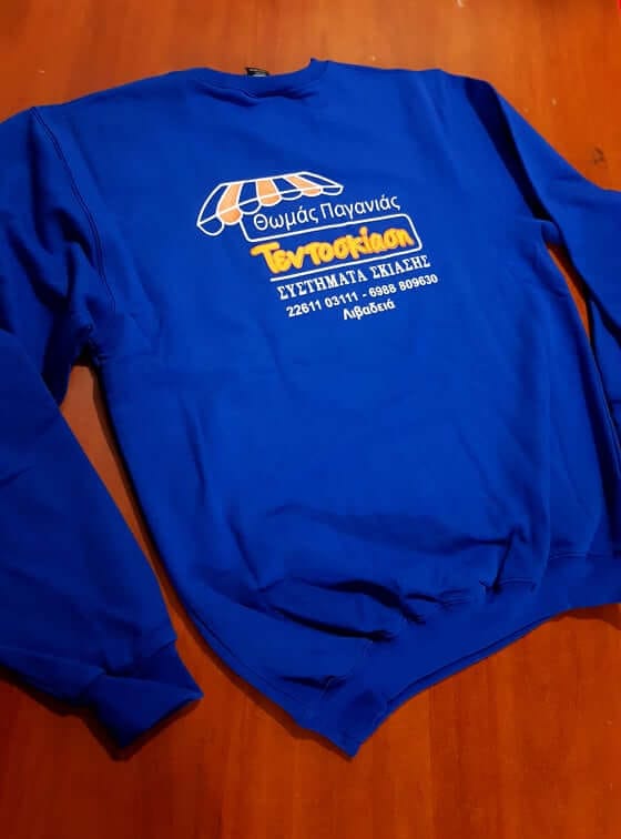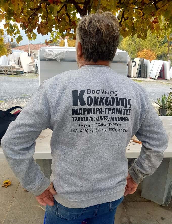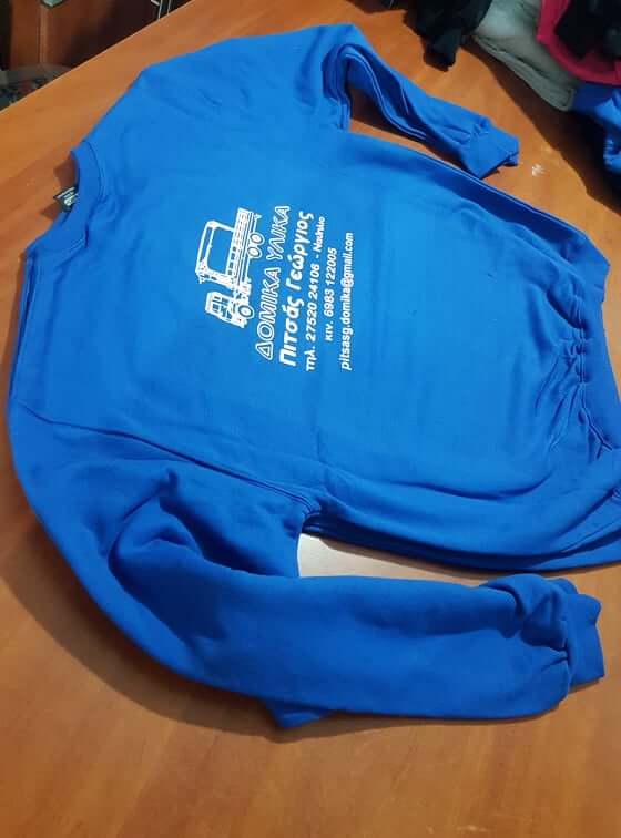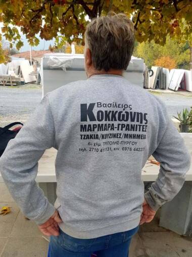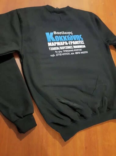 Πλαϊνές ραφές – Μανικοκόλληση – Ελαστικό ριπ στις μανσέτες, το κολάρο και το τελείωμα – Φακαρόλα στο λαιμό